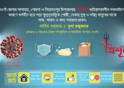 করোনাভাইরাসের দুর্যোগে ঘরবন্দি কর্মহীন অসহায় পরিবারের ঘরে খাদ্য সহায়তা পৌঁছে দিয়েছে সামাজিক ও সাংস্কৃতিক সংগঠন